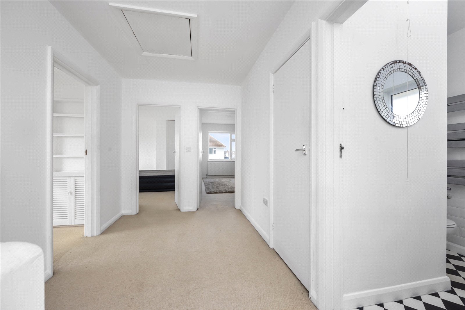 The ground floor features a spacious entrance hall that sets the tone the moment you step inside. There is a bright and generous reception room, a family kitchen, a study or fourth bedroom, and a downstairs WC. Upstairs you will find a large landing, three double bedrooms, one with en suite, and a family bathroom. A loft hatch provides access to an impressive loft space. Most rooms are dual aspect, filling the house with natural light and offering lovely views towards the sea.