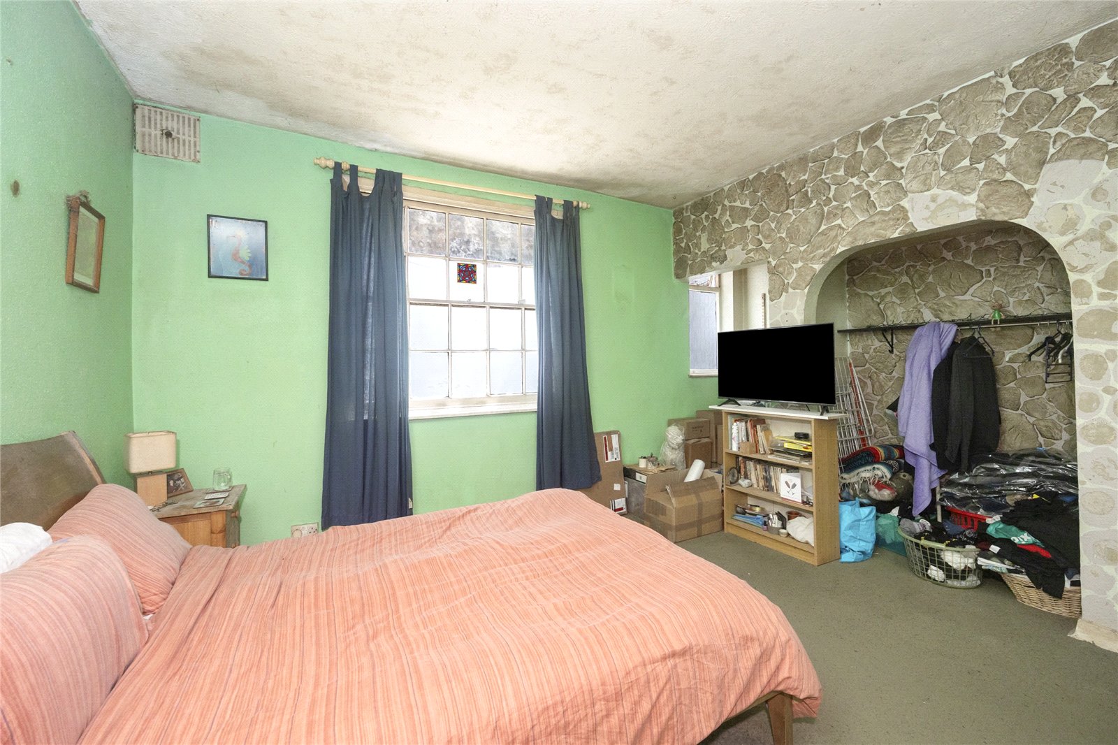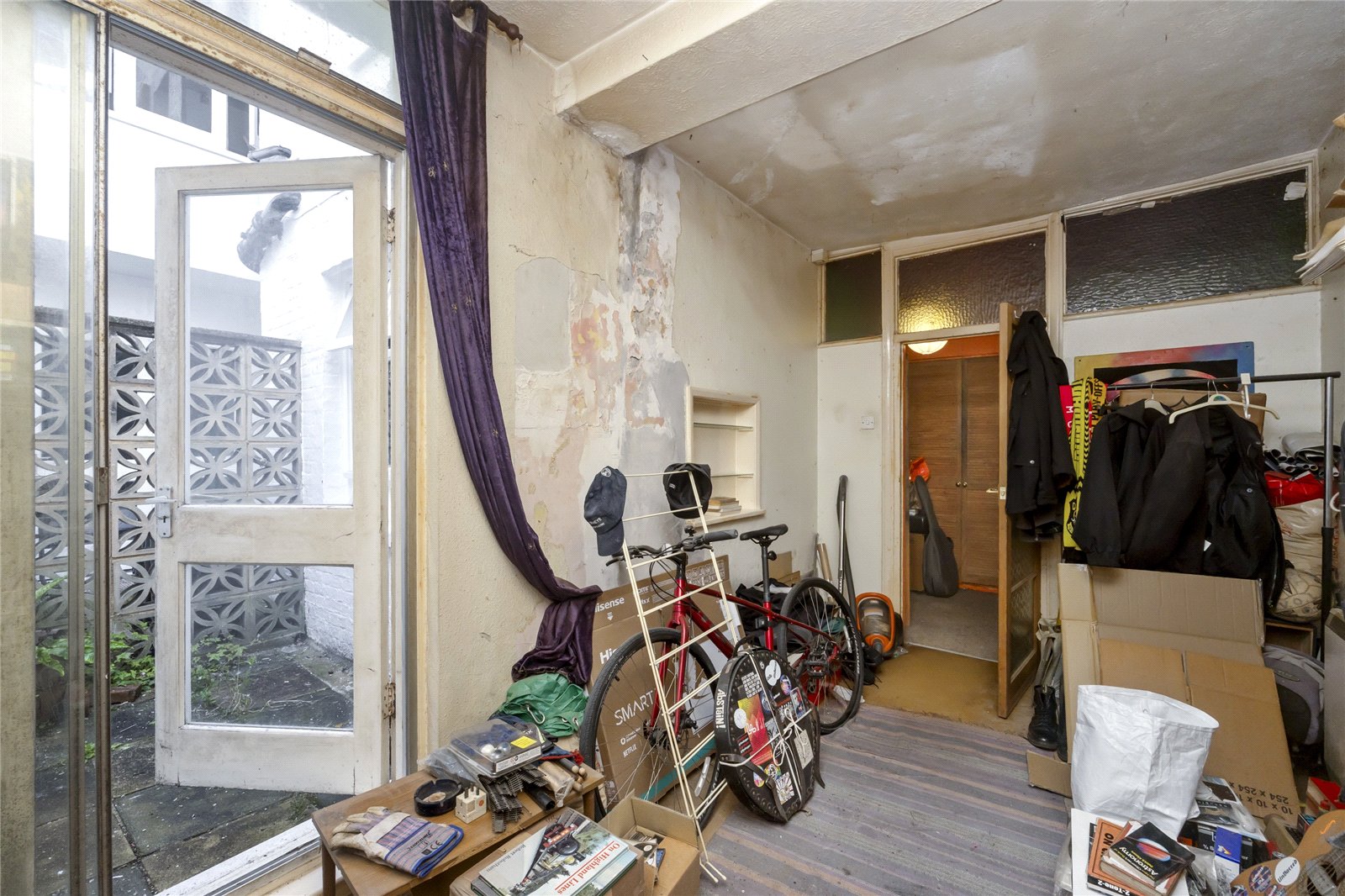 Tucked away at the rear of this iconic Hove building, the apartment offers an impressive 840 sq ft of internal living space, two private patio areas, two bedrooms, and a share of the freehold. This home is ready for complete refurbishment, making it perfect for someone looking to add their personal touch with a hint of quirk. From the moment you walk in, the space feels open and well laid out. Having two outdoor areas is a true luxury in city living, especially being so close to the sea.