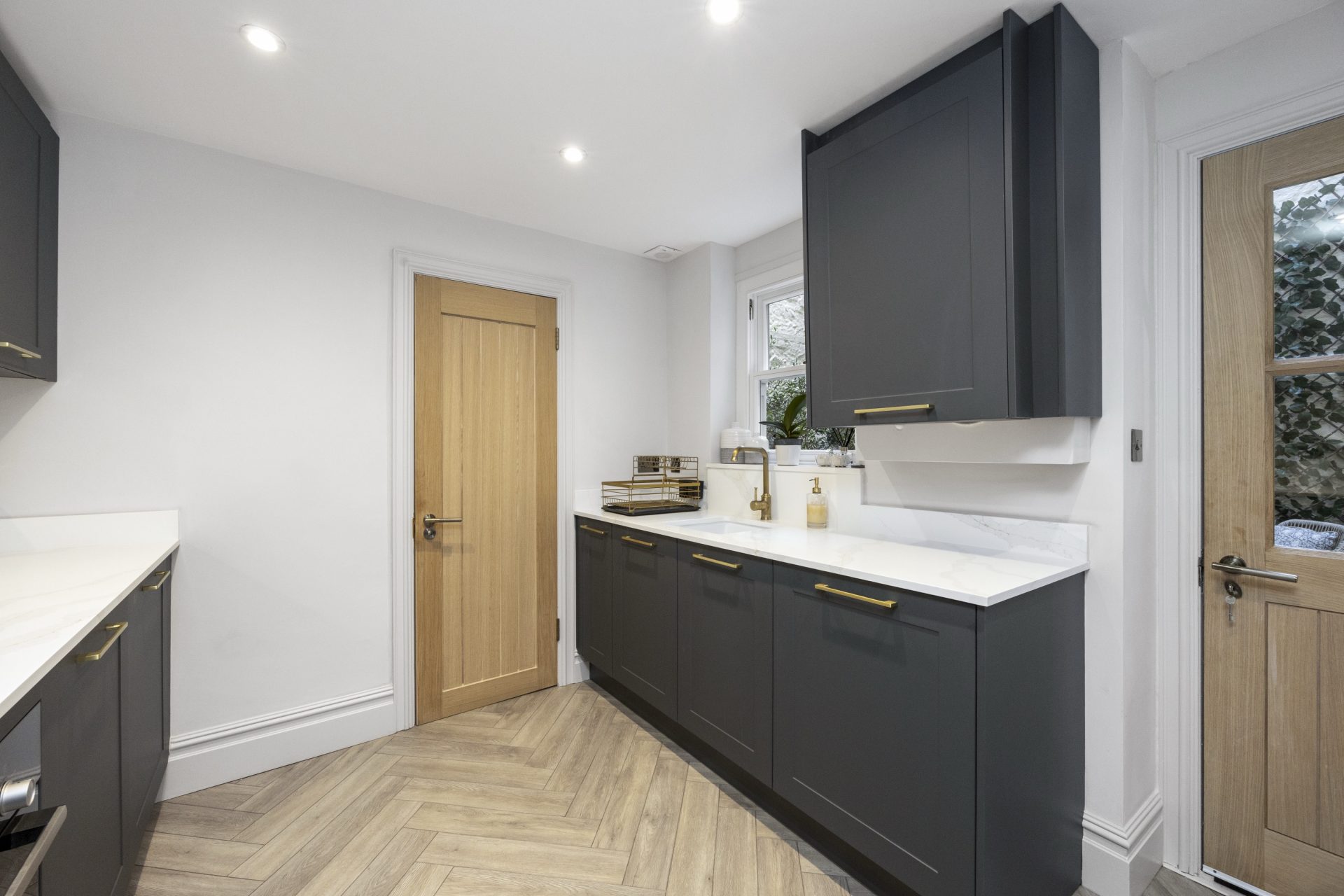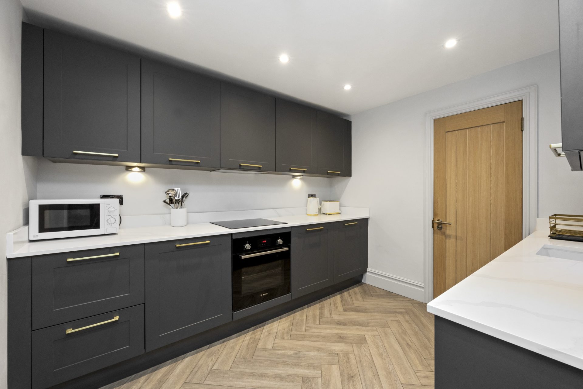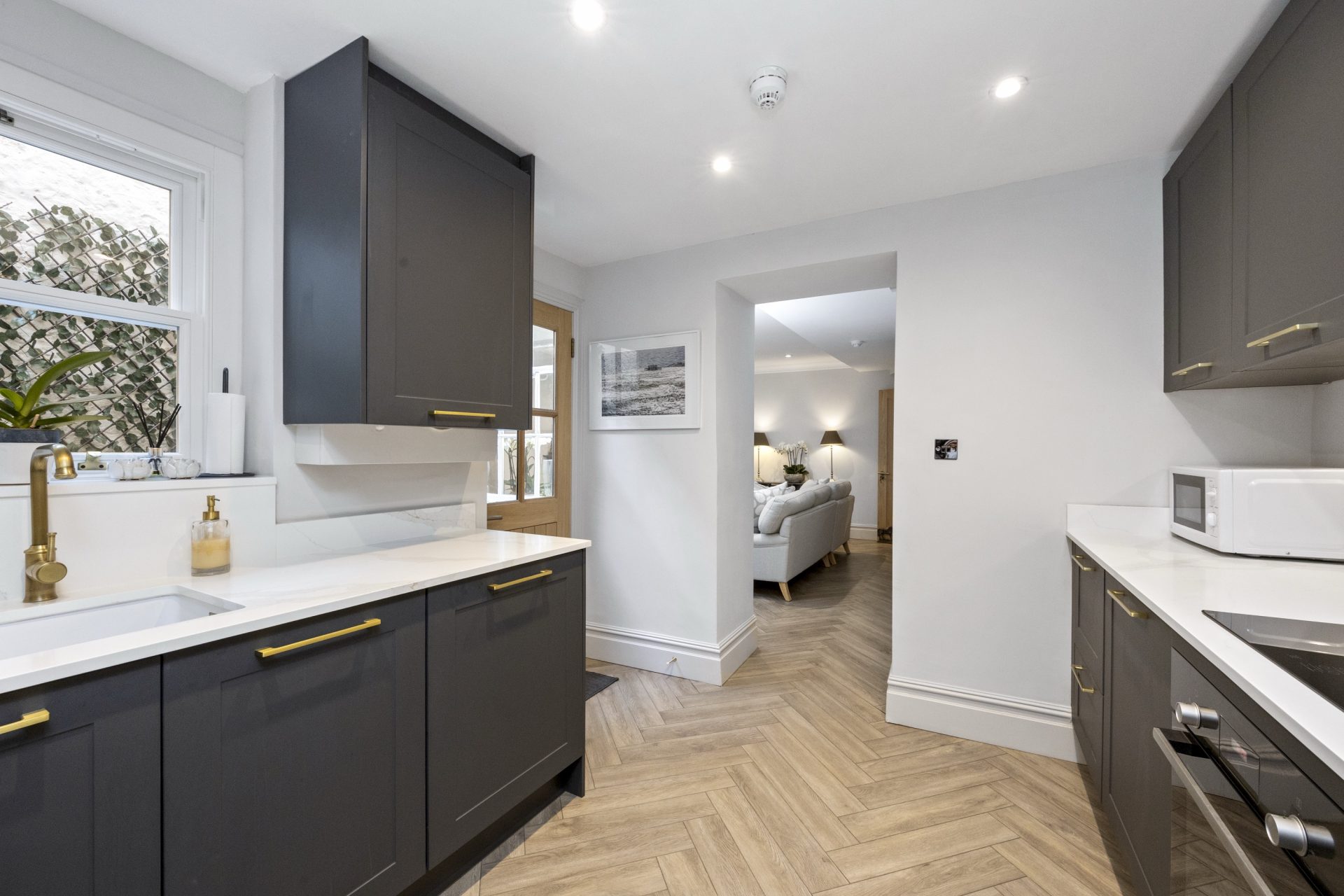 The property has been well thought out and is sizeable, with over 700 sq ft of internal living space. The herringbone-style floor, high-spec radiators, and premium electrical sockets and switches give a sumptuous feel. Storage has not been forgotten, with two sizable internal cupboards along with external space ideal for bikes and beachwear. The reception room features a superb fireplace and space for a table, leading through to the high-spec, fully fitted kitchen, where you’ll find a cloakroom housing the washing machine, with a luxurious quartz worktop at the end.