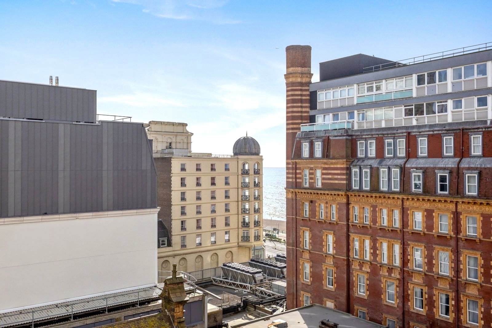 The reception room is particularly expansive, with elevated views across the neighbouring hotel, the seafront, and Brighton itself. The principal bedroom is notably large, featuring a built-in wardrobe while still offering ample space for additional storage or a home working area. The second bedroom is also well-proportioned, bright, and nicely presented, with space for further furnishings.